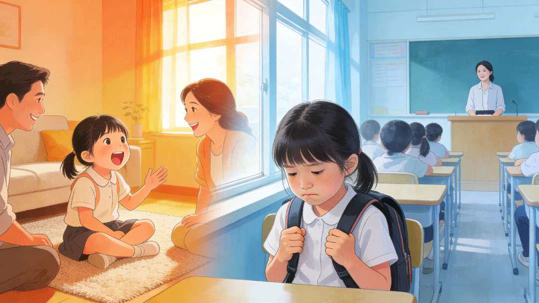 孩子在家人面前叽叽喳喳、表达流畅,到了学校却紧闭双唇,面对老师的提问始终沉默;