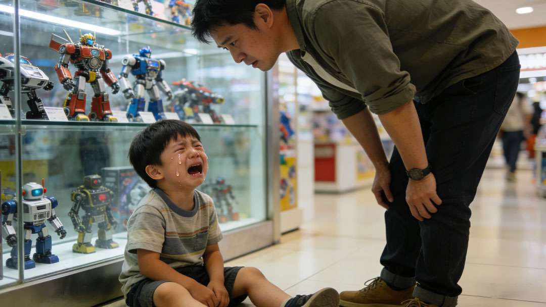 孩子哭闹着要橱窗里的限量款玩具,你耐着性子说 “太贵了”,他却撒泼打滚不肯走;